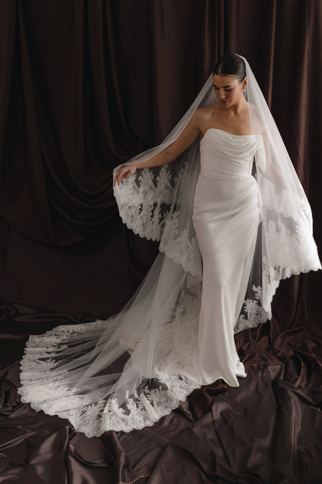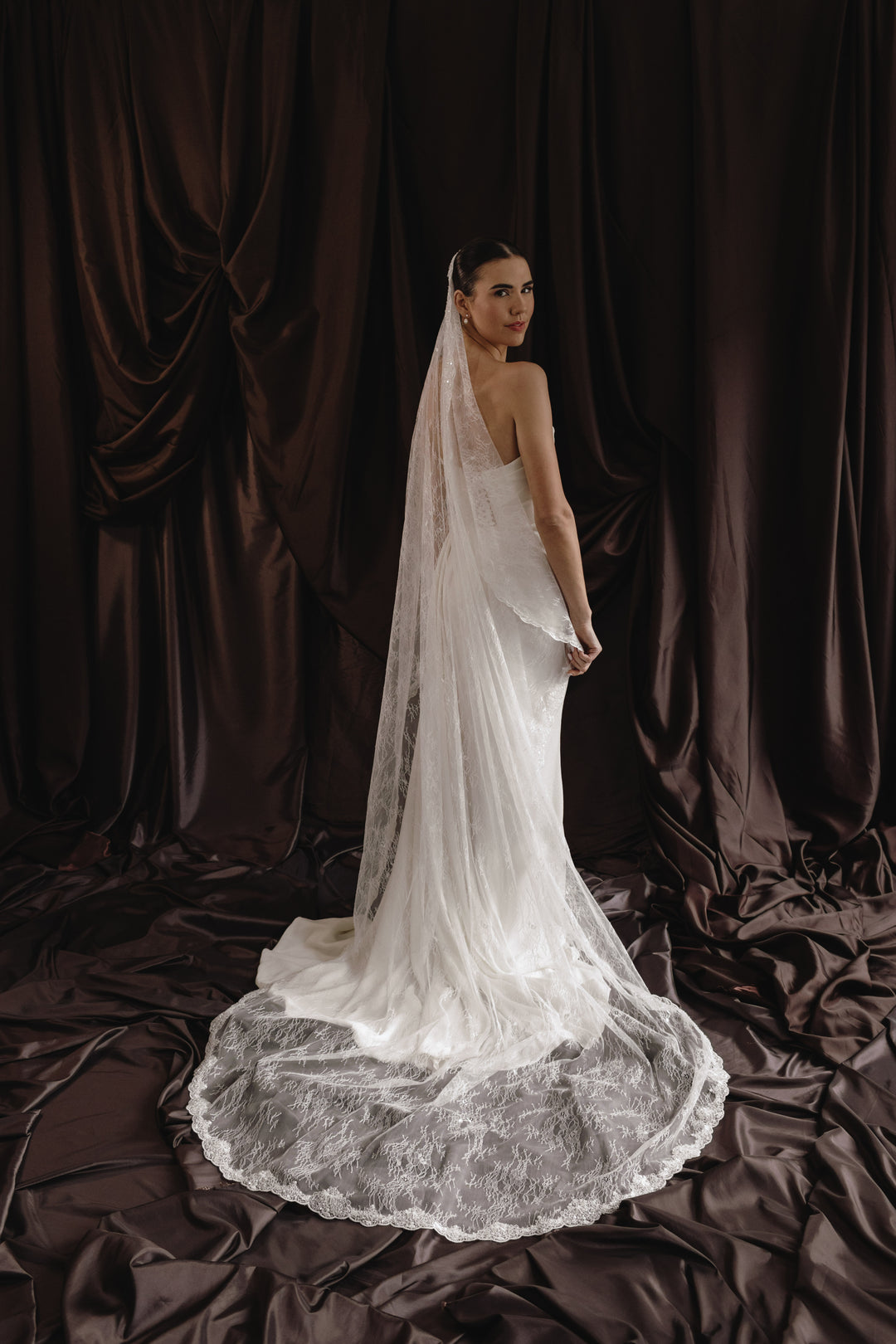 Inspired by Italian heritage and old-world atelier craftsmanship, each veil is defined by intentional scale, refined structure, and exceptional detail. From clean architectural borders to raised corded lace, luminous pearl embellishment and full Chantilly immersion, every piece has been created to shape the silhouette and define the moment.